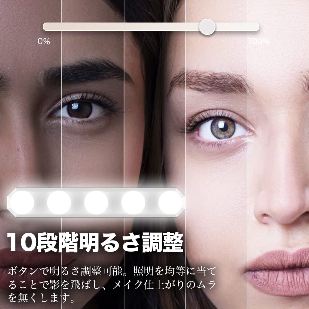 - 【省エネなUSBライト】USBに接続するだけで、普段の鏡がメイクアップライト鏡にグレードアップ!一つの電球は0.8ワットだけ、弱い電流なので安心で使えます。(コンセントがない場所でもモバイルバッテリーでご利用いただけます。)