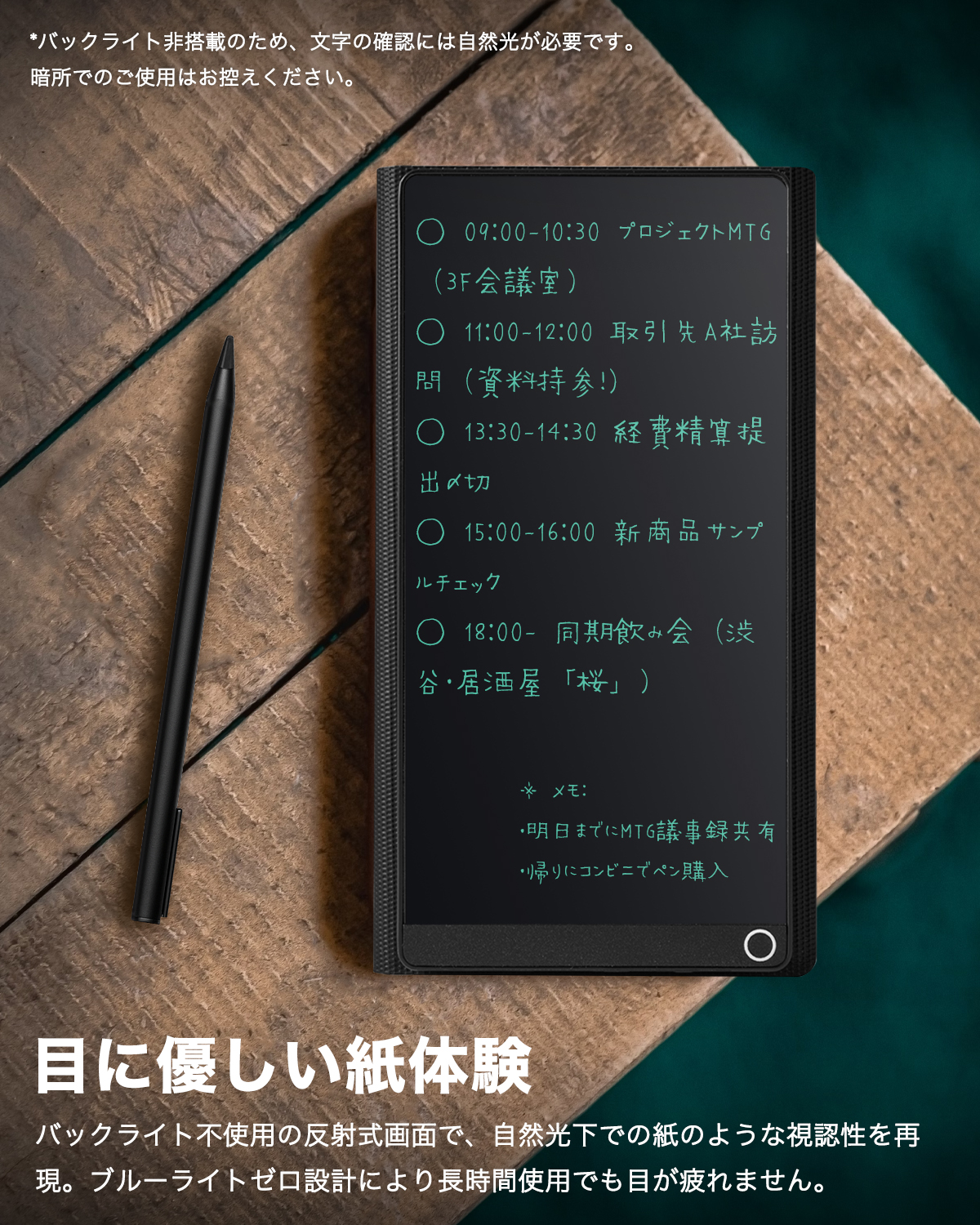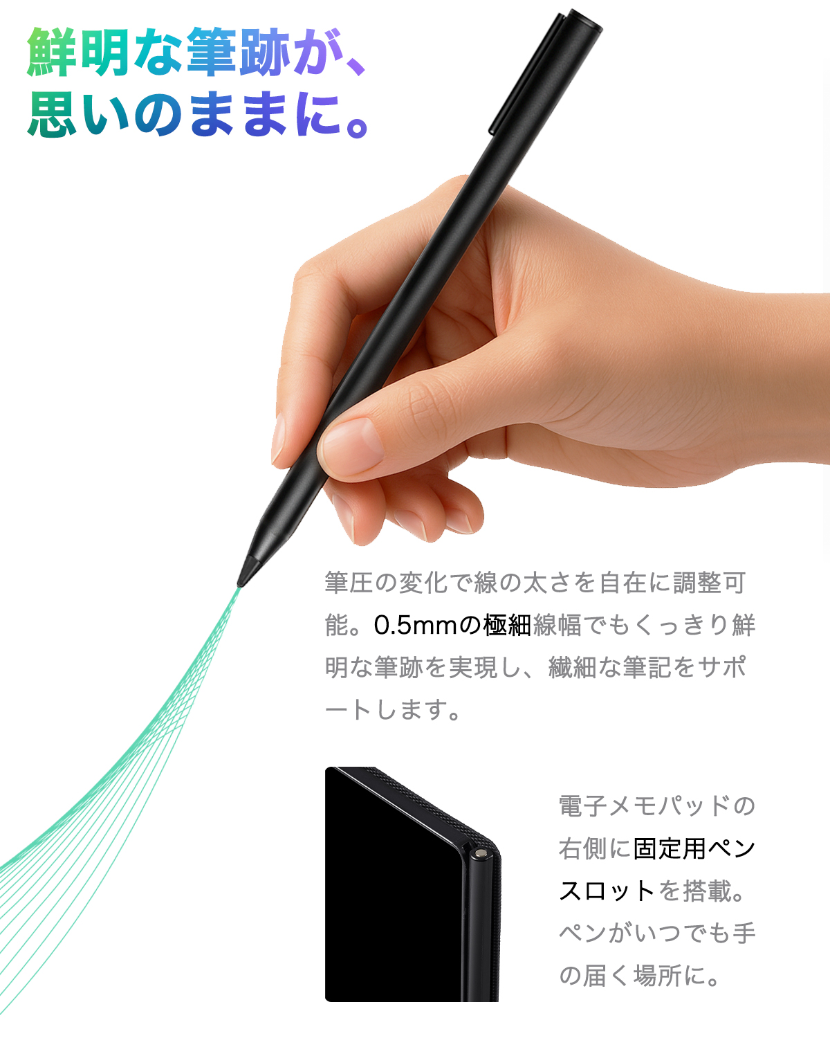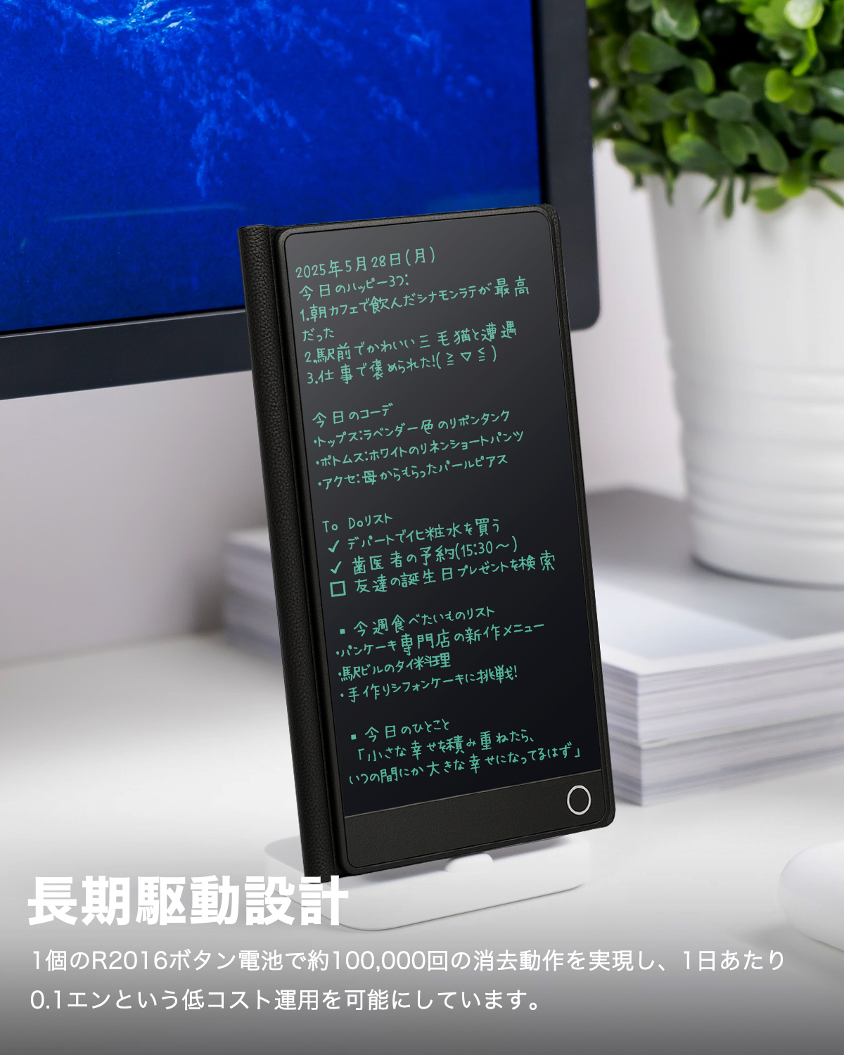 - 【消去ロック機能】重要なメモは「消去ロック機能」で誤消去を防止。大切な情報をしっかり保護し、安心して長くご利用いただけます。付属ペンは本体右側のスロットに収納でき、収納・携帯に便利。