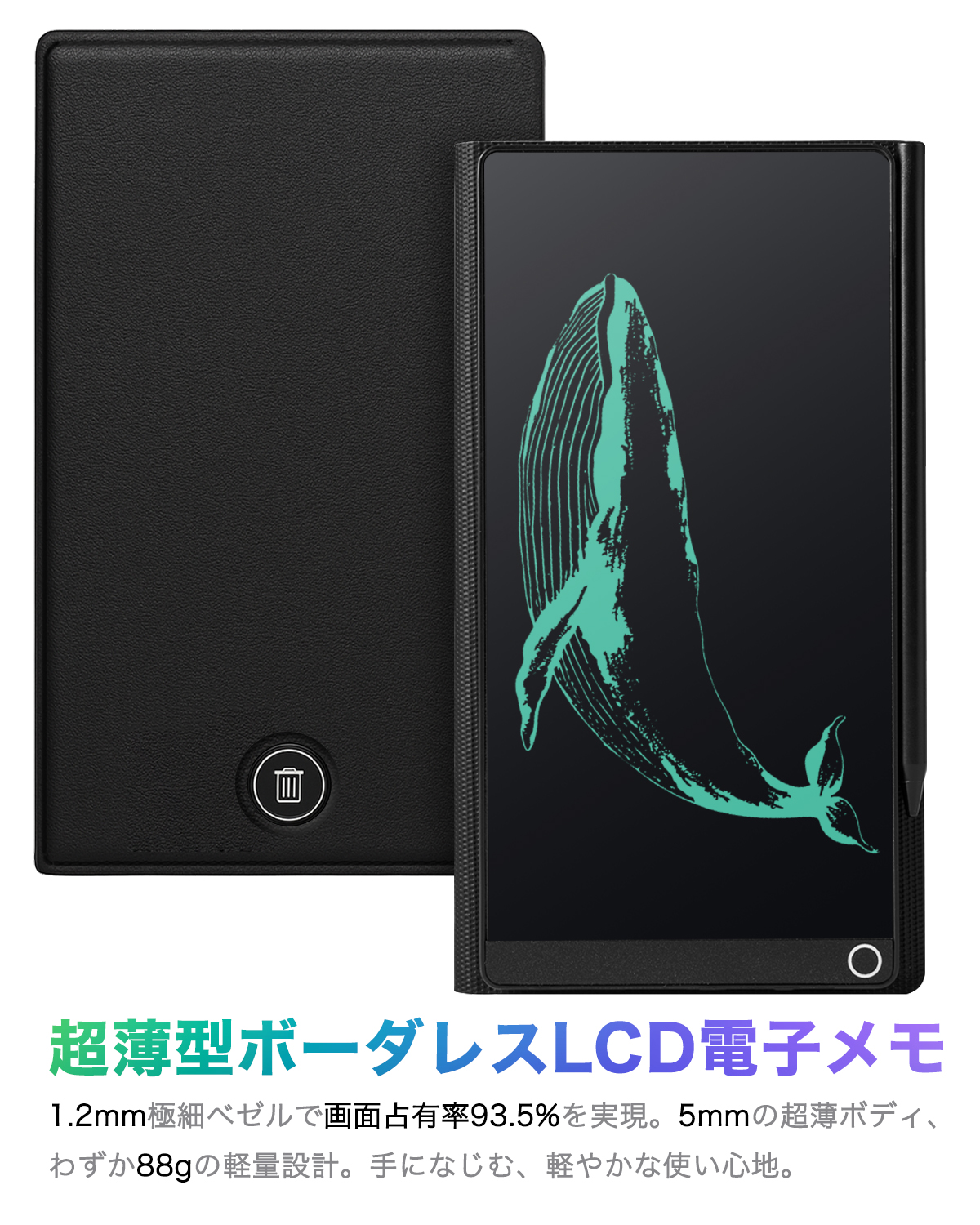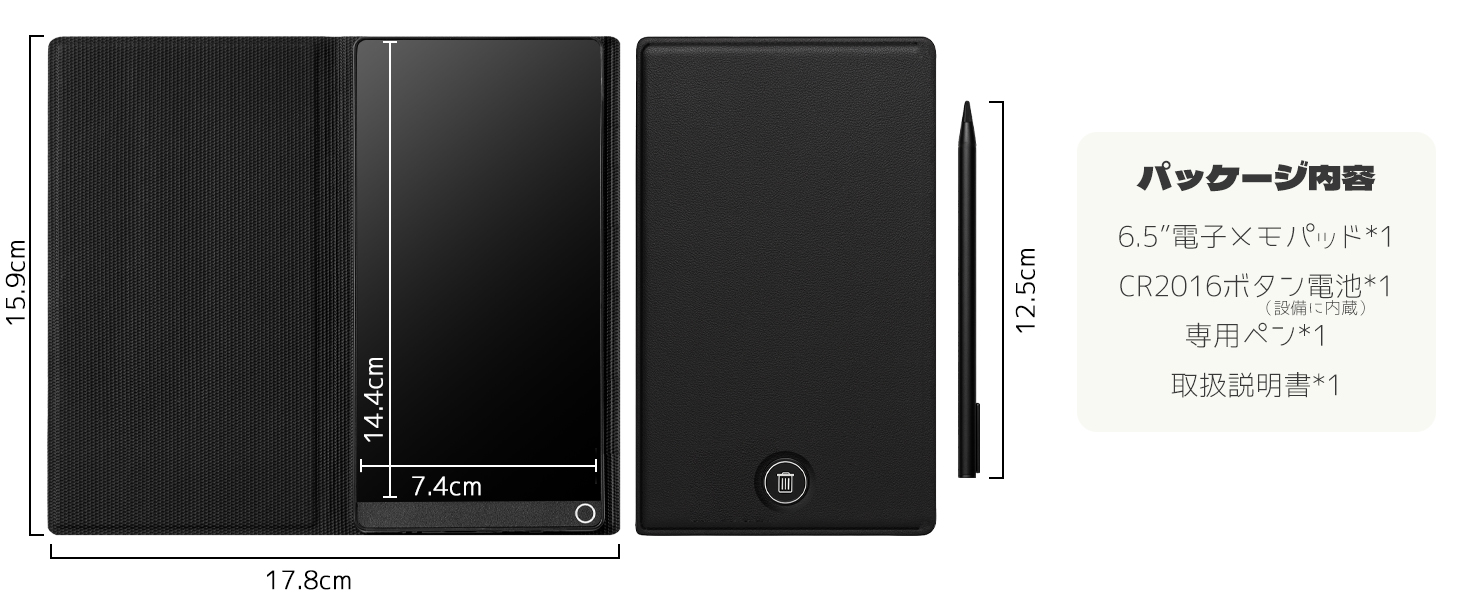 - 【6.5インチ全面スクリーン&超薄設計】 「1.2mm極細ベゼル」で画面占有率93.5%を実現。5.2mmの薄型ボディはノート感覚で携帯可能(カバー付きの製品サイズ:15.9×8.5×0.5cm)。広々とした14.4×7.4cm表示領域で、スケッチ練習、デッサン描画、書道練習、学生の下書き、マインドマップ作成、会議議事録、メモなど、多様な使用シーンに対応しています。