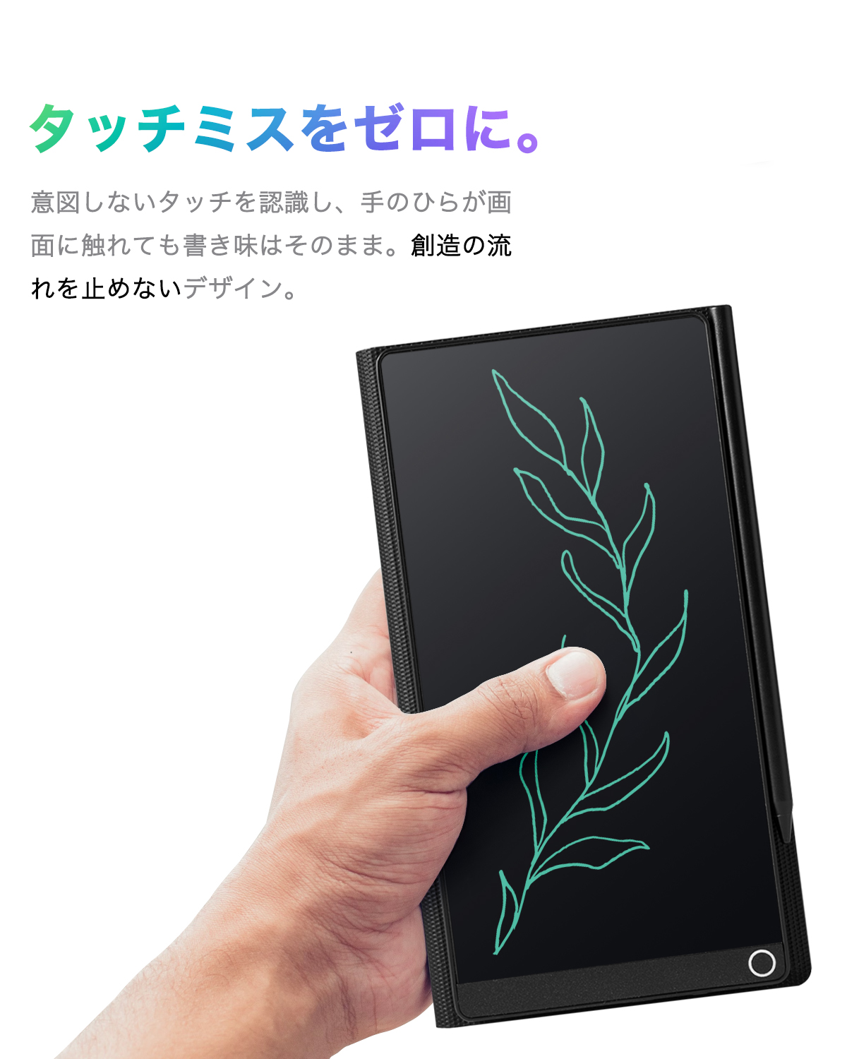 - 【0.5mm超狭筆跡対応で高精細な筆記】0.5mm筆圧感知技術で、細密な線描きや文字書きが可能。手のひらや指の接触を自動認識し、意図しない着色を防止。爪など硬い物体のみ痕跡を残せる誤触防止設計。
