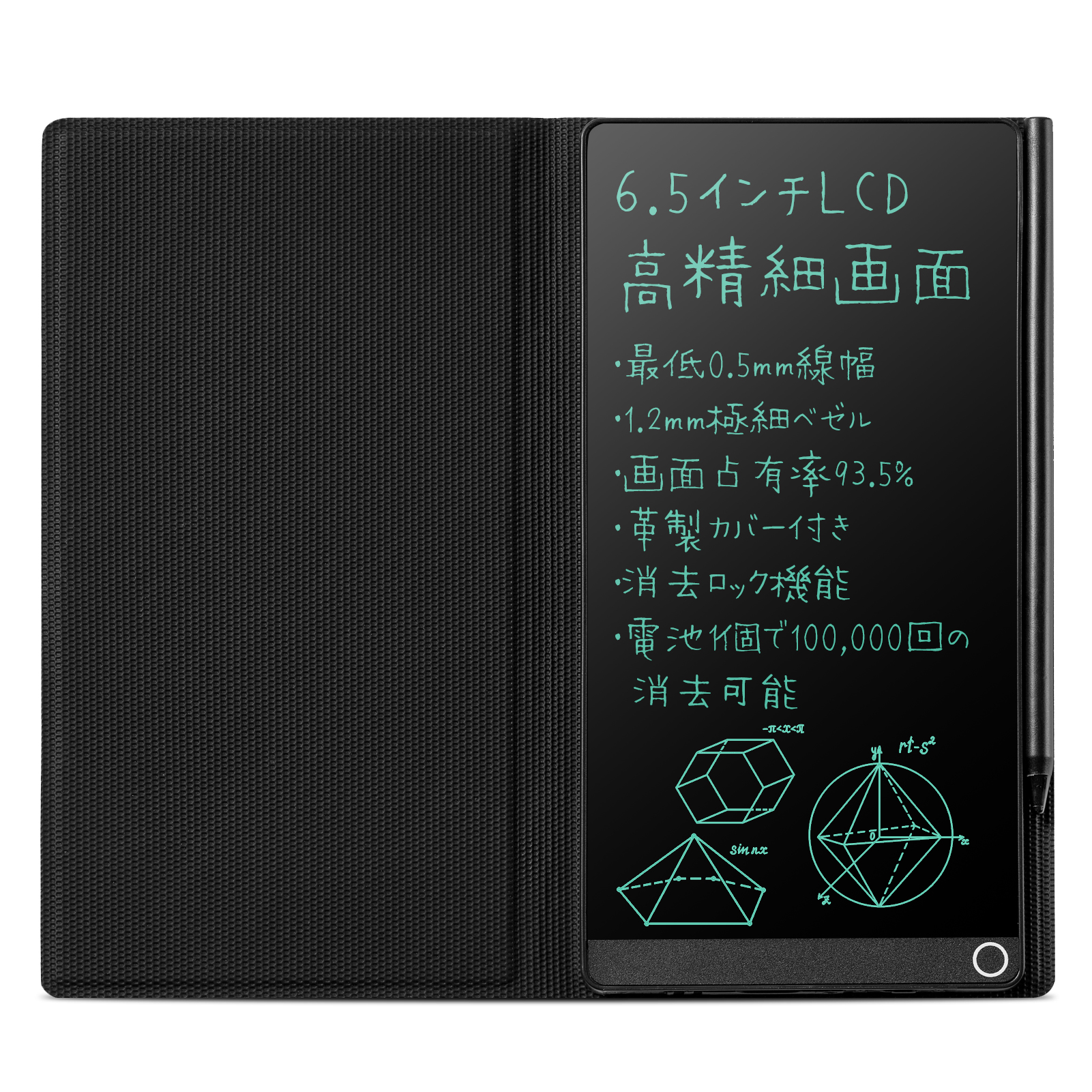 電子メモパッド デジタルノート 6.5インチ 超薄型 PUレザーカバー付き 0.5mm極細線幅 ロック機能付き ワンタッチ消去 スロット式ペン収納 誤操作防止 電池交換可能 電子手帳 筆談ボード 電子ペーパー ボード 伝言板 学生 勉強 ビジネス 業務用